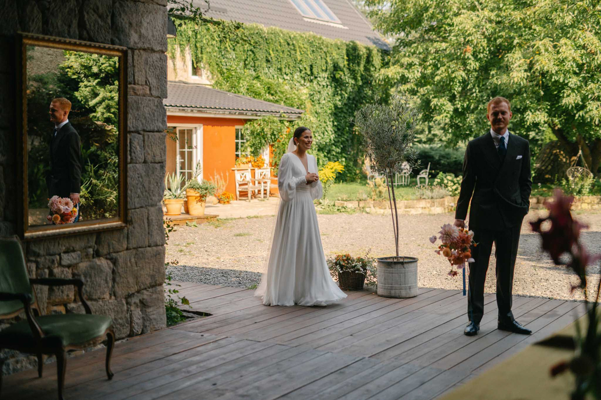 First look zorganizowaliśmy na dziedzińcu wcześniej wspomnianego Domu Cukiernika. Było intymnie, bez widowni. Później udaliśmy się spacerkiem jakieś 200 metrów na miejsce ceremonii i wesela do ogrodu Pod Lipami. Wraz z rozpoczęciem ceremonii zniknęło ostre światło i mieliśmy idealne warunki. Flower man'i rozpoczęli show, a Zuzia wchodząc wraz z tatą dała wszystkim powód do wzruszeń. Ceremonia była przepiękna, nie ukrywamy że te w plenerze z pewnością lubimy najbardziej. Wyjście z ceremonii zgrało się z lekkimi opadami co do sekundy, ale mamy za to super ujęcia z uciekającymi przed deszczem gośćmi.